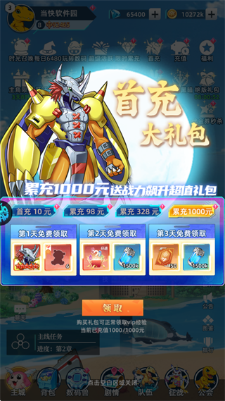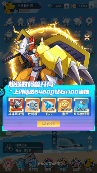 完成新手教程免费领取五星究极体战斗暴龙兽。